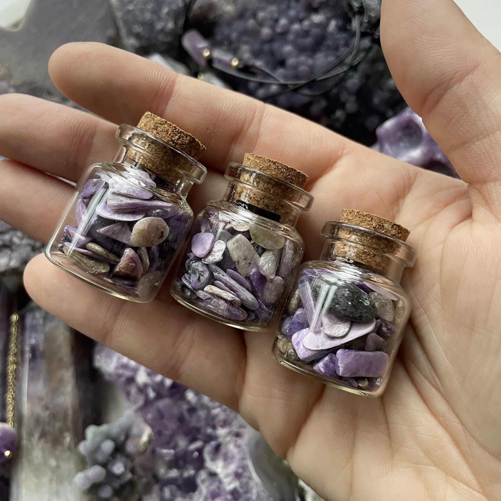 Mały słoiczek wypełniony drobnymi kamyczkami