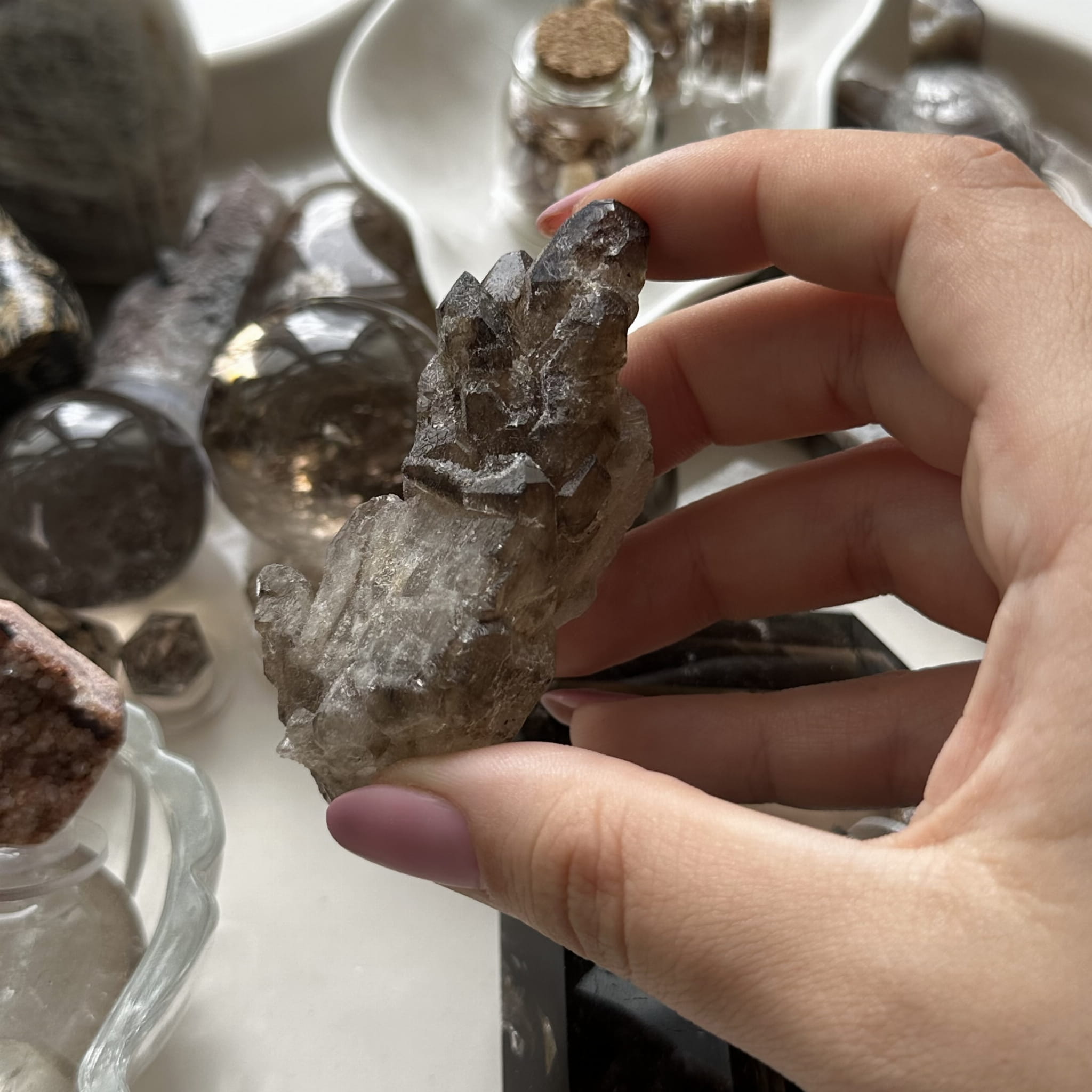 Kwarc dymny to kamień spokoju i harmonii. Idealny do pracy nad stresem, pomaga pogłębić stan relaksu. Dobry kamień ten warto mieć przy sobie podczas stresujących, ważnych egzaminów, wydarzeń. Pomaga również się uziemić. Rozprasza negatywną energię wysyłaną w Twoją stronę.