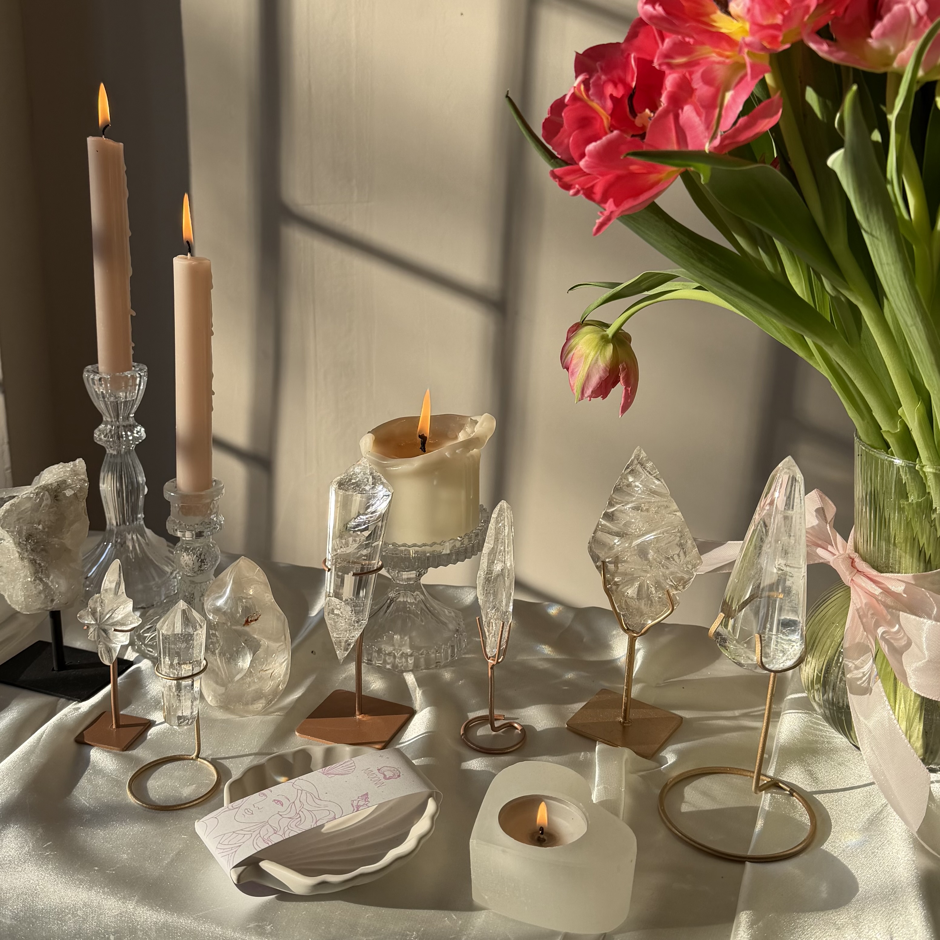 Monkoryształ lemuryjski diamentina kryształ górski na stojaku