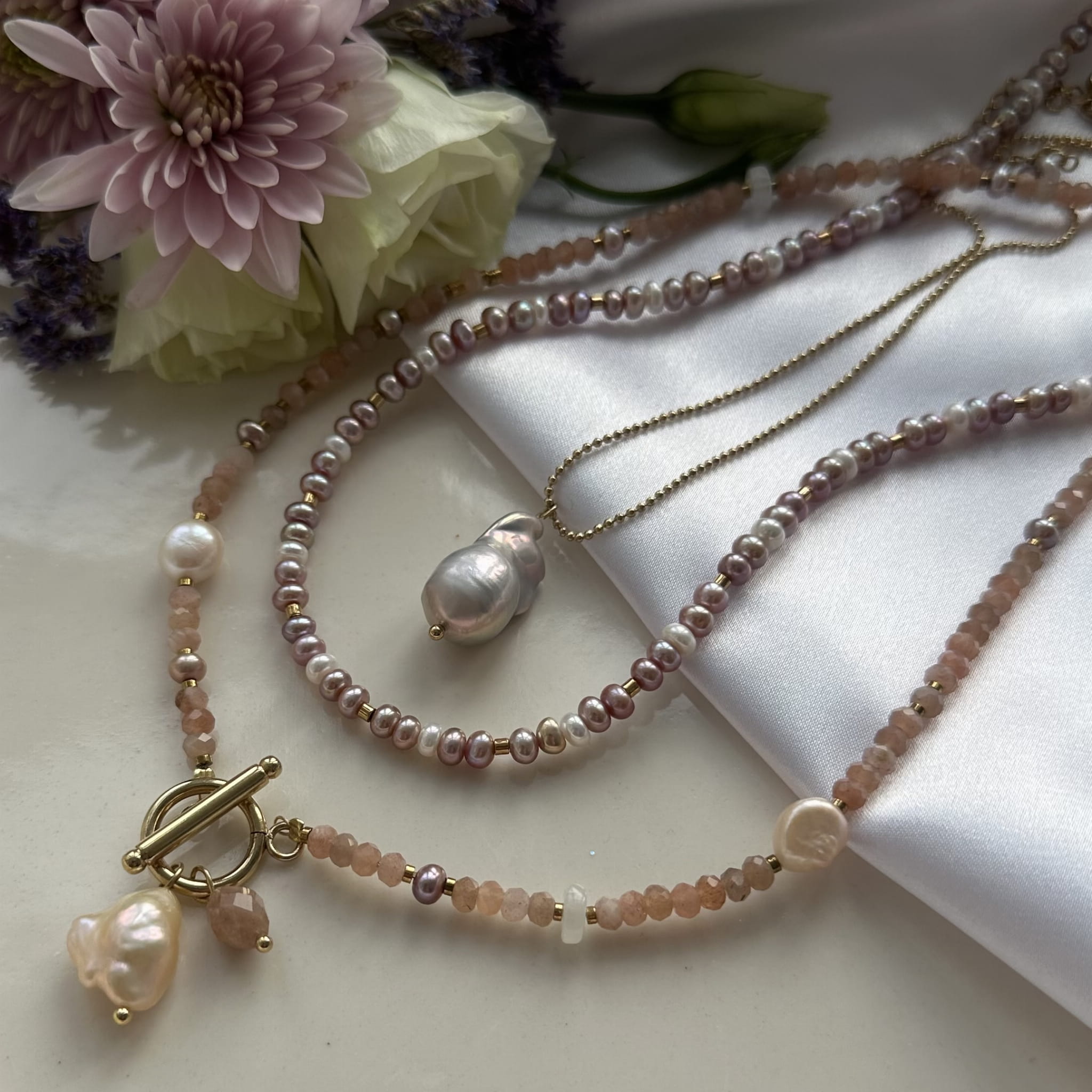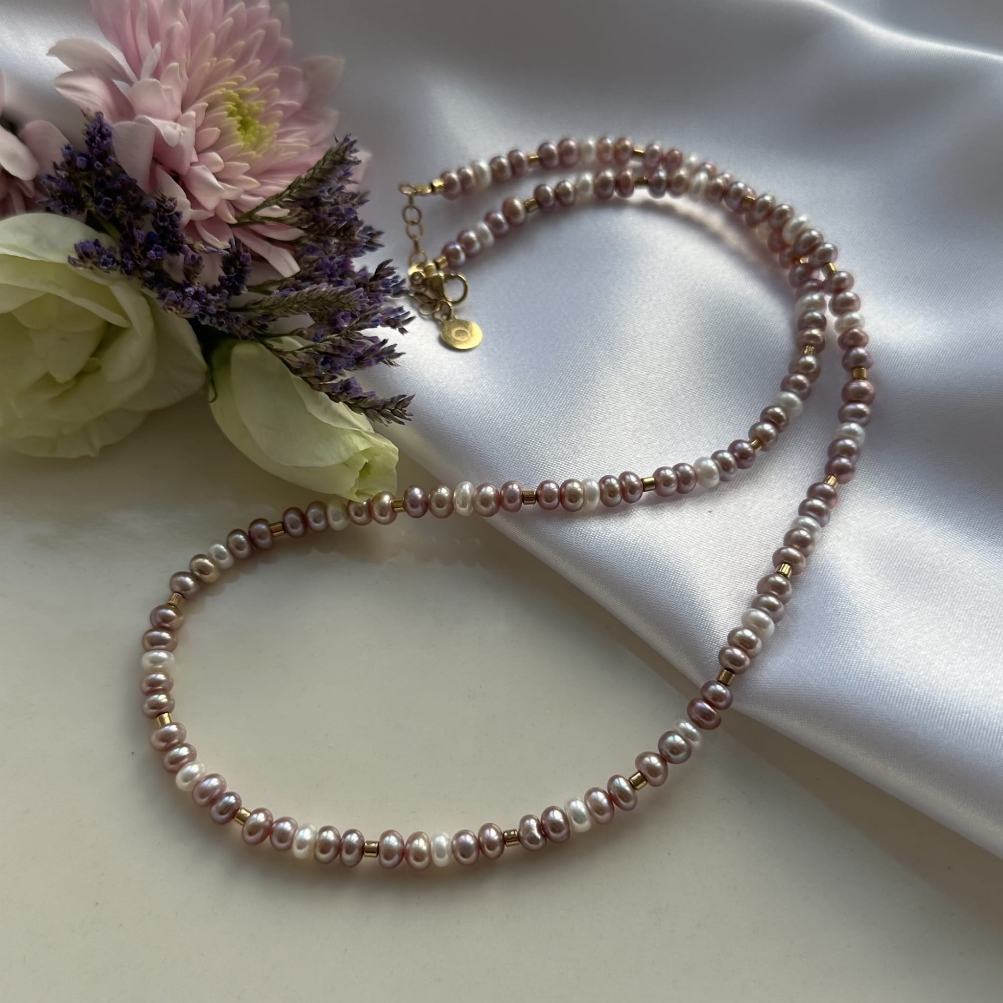 Naszyjnik perły różowe i białe L21