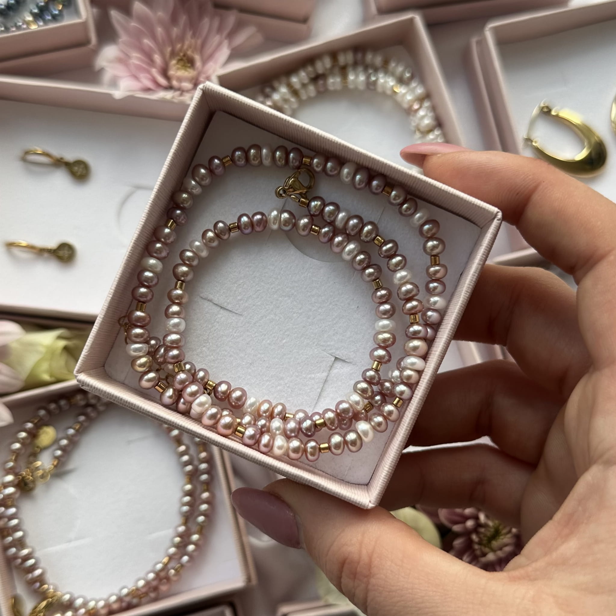 Naszyjnik perły różowe z białymi