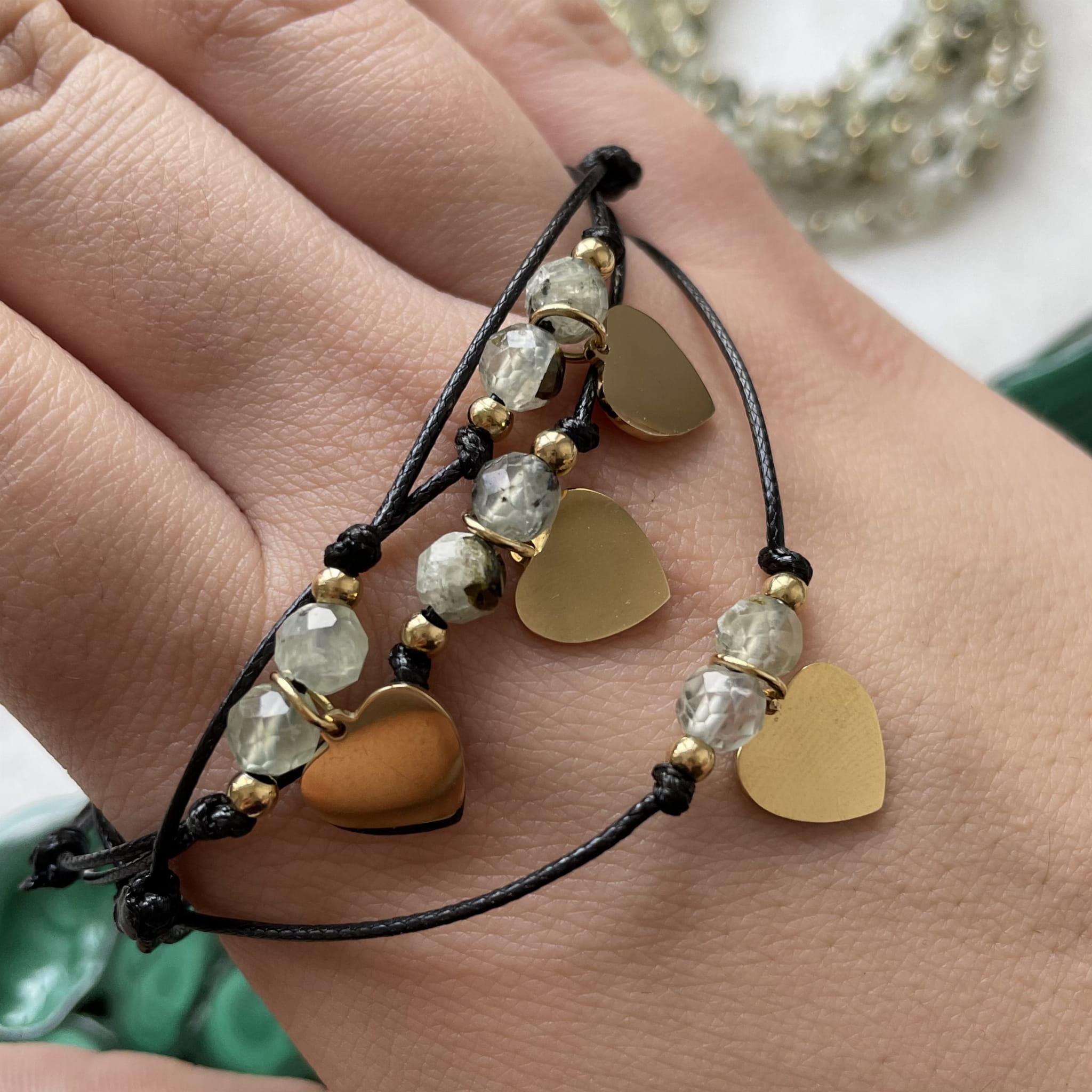 Prehnit bransoletka zaciągana fasetowana kulka + kulki ze stali chirurgicznej 316l