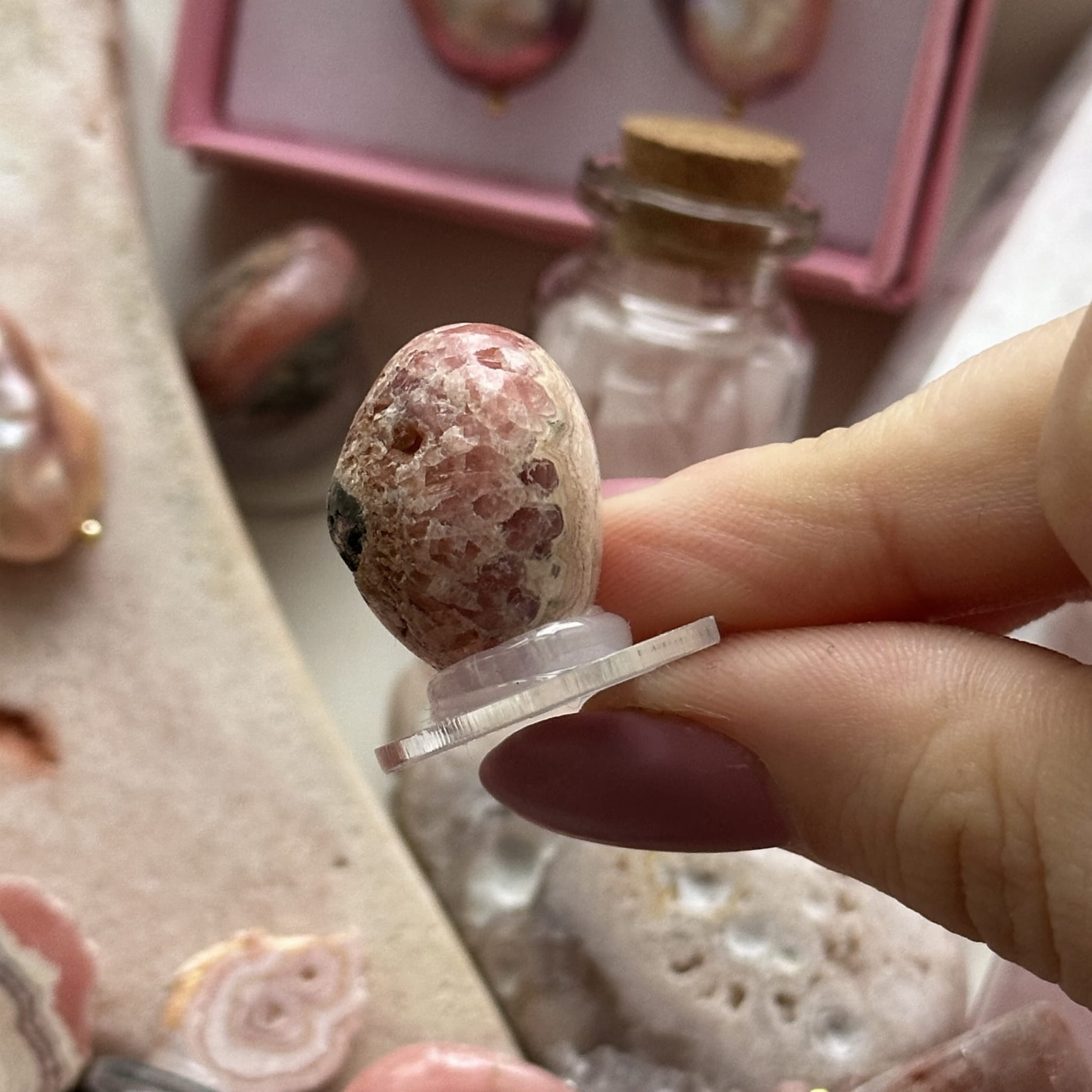 Rodochrozyt to kamień miłości, zarówno tej wewnętrznej jak i tej zewnętrznej. Pomoże Ci zaakceptować otaczająca Cię rzeczywistość oraz samego siebie. Kamień idealny do pracy z czakrą serca oraz korzenia.