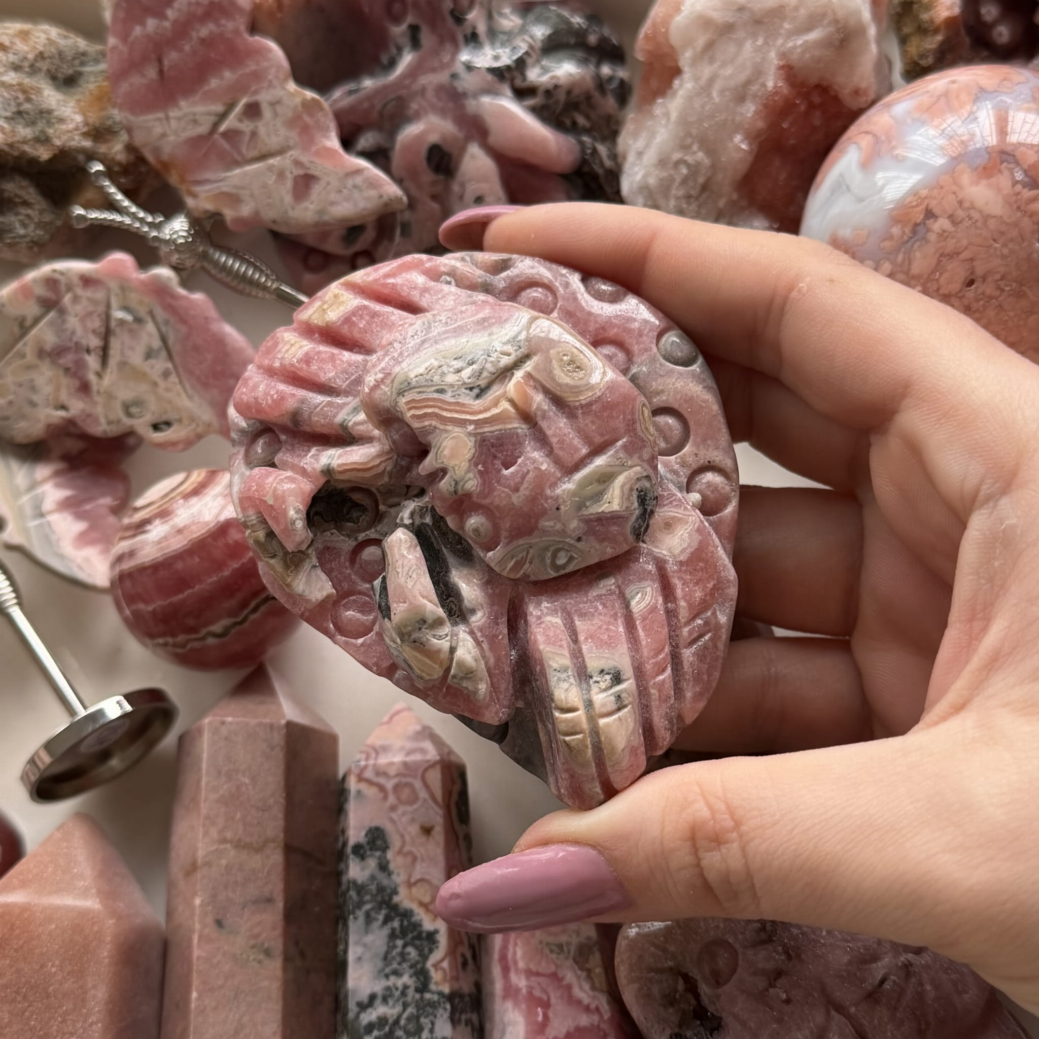 Rodochrozyt to kamień miłości, zarówno tej wewnętrznej jak i tej zewnętrznej. Pomoże Ci zaakceptować otaczająca Cię rzeczywistość oraz samego siebie. Kamień idealny do pracy z czakrą serca oraz korzenia.