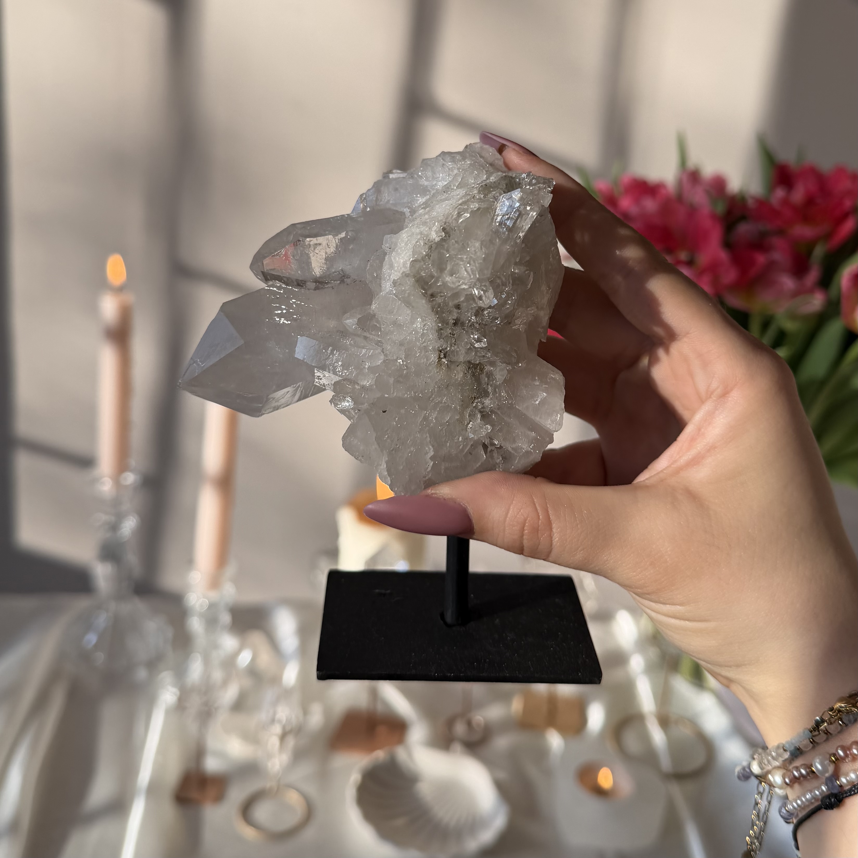 Szczotka kwarcu, kryształ górski na stojaku K12
