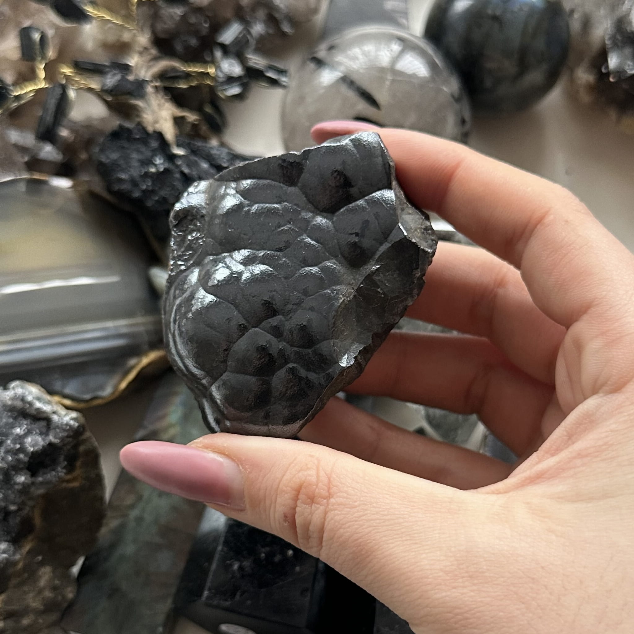 Hematyt nazywany jest kamieniem szczęścia. Hematyt dodaje odwagi, wzmacnia poczucie zadowolenia oraz wspiera wewnętrzny spokój. Kamień ten wspomaga osoby cierpiące na bezsenność. Hematyt nie lubi kontaktu z wodą, ma również właściwosći rozładowujące inne kamienie.